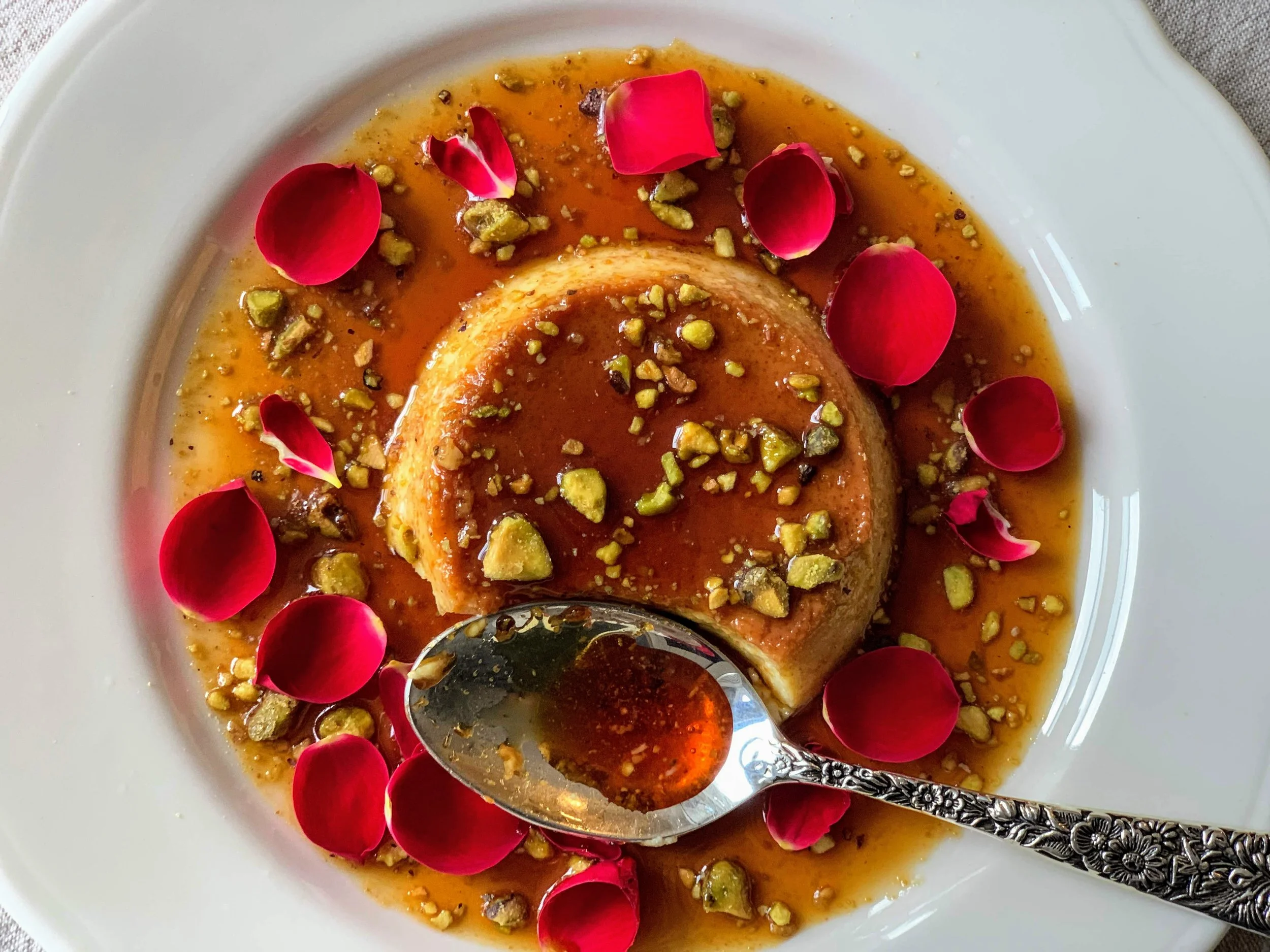 Rose and Pistachio Flan